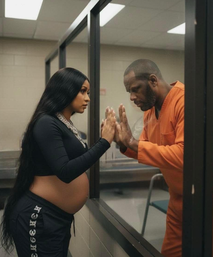 In this imagined scene, Cardi B steps into the quiet visiting room of the prison, unsure of what to expect. The noise of the outside world — fame, fans, criticism, and chaos — fades as she sits across from R. Kelly, who appears far more reflective and humbled than the superstar he once was.